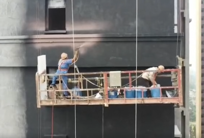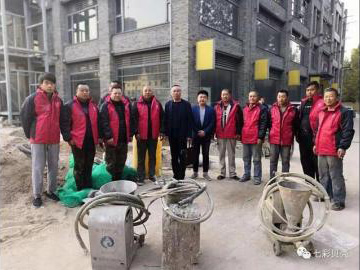 真石漆噴涂機 溫馨走進施工現(xiàn)場 展示團隊關